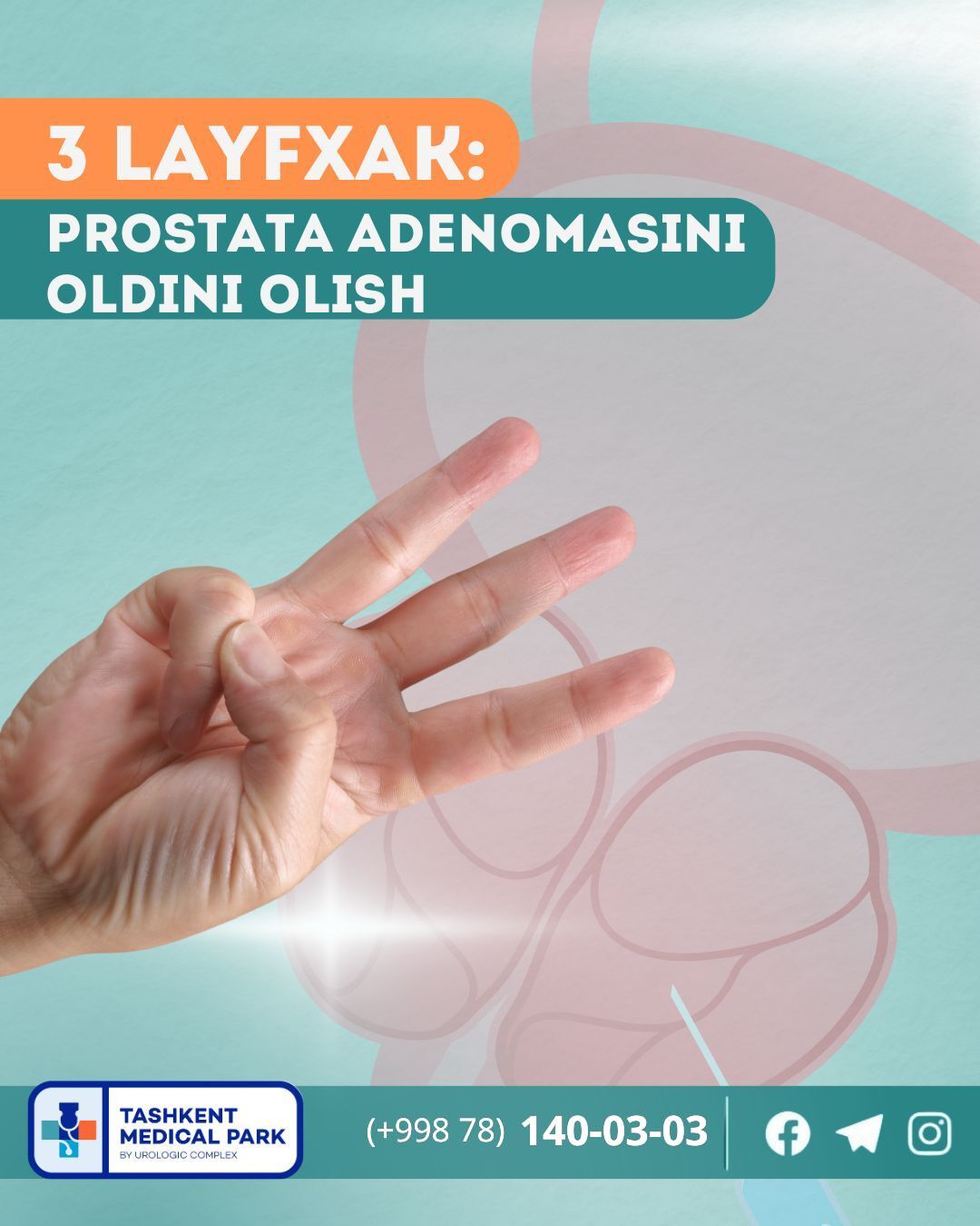 ‼️ 45 yoshdan oshgan har ikkinchi erkak prostata adenomasi bilan kasallanadi. Ammo buning oldini olish mumkin!